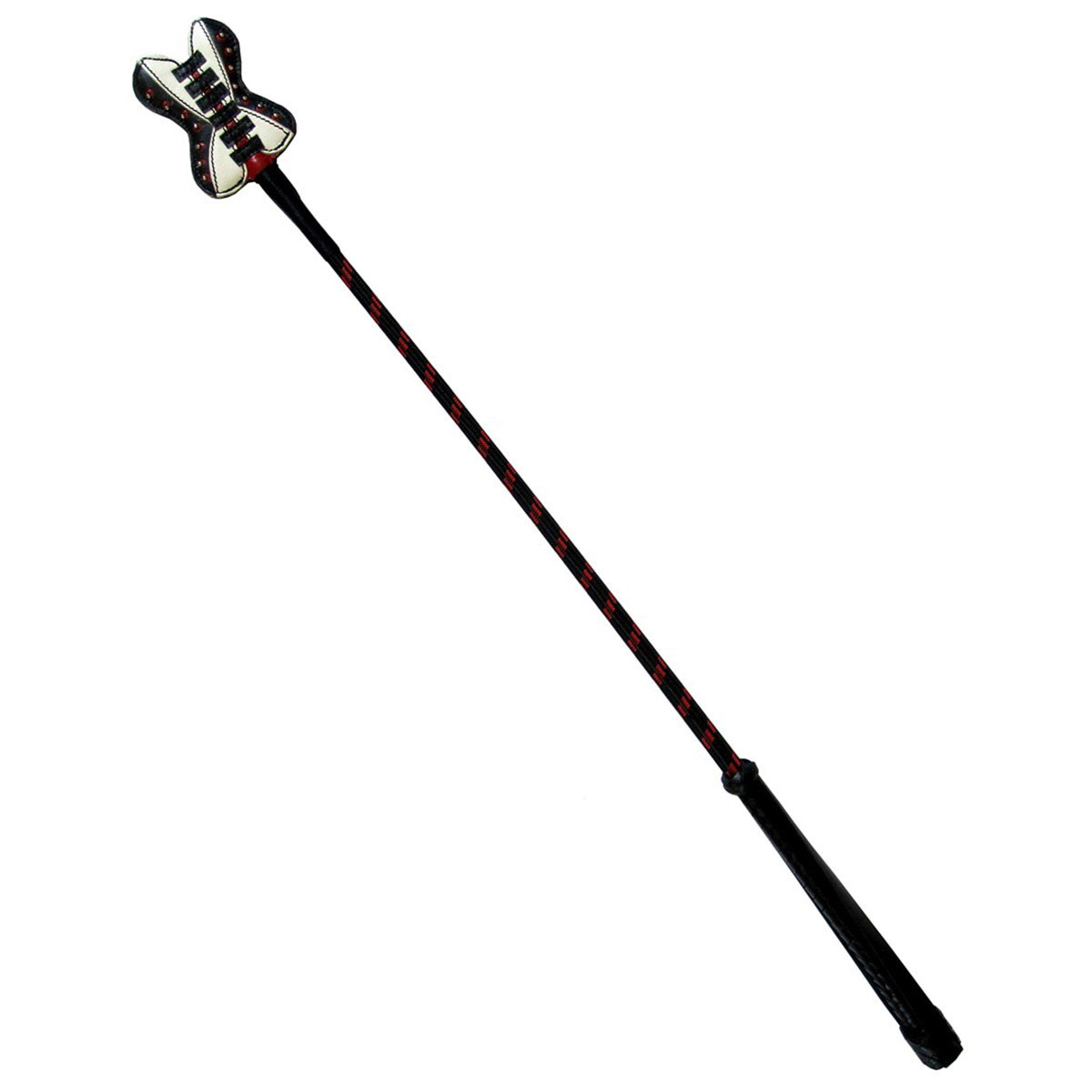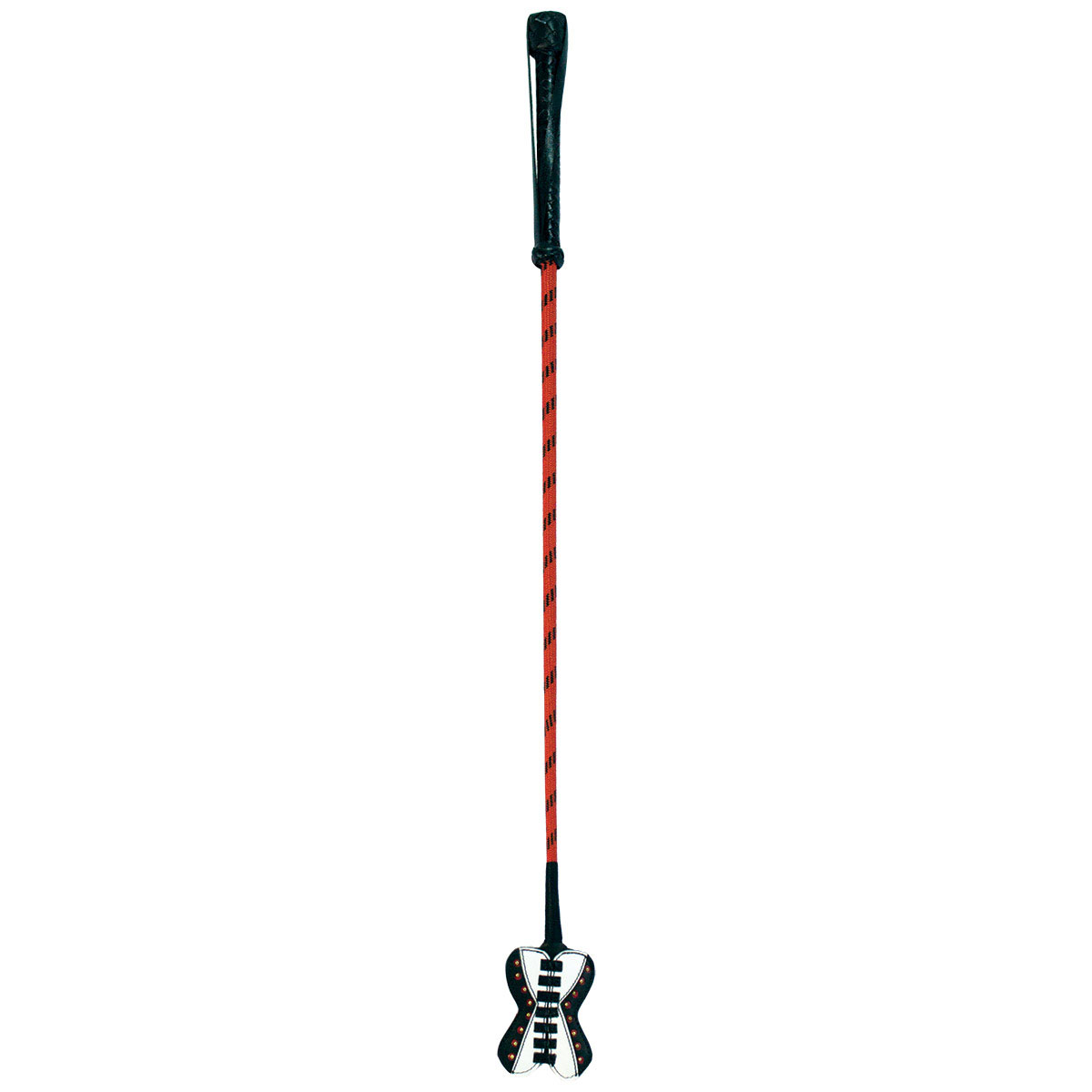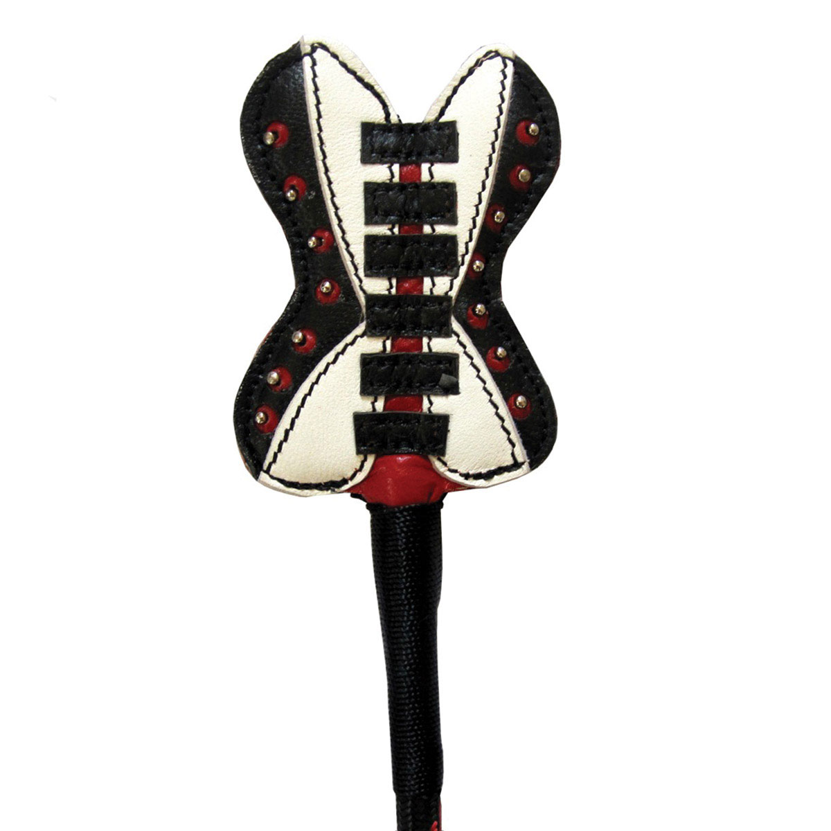 <p>Unlace your lover and cinch up a naughty evening with a tightly hand-crafted, fashionably fetish leather crop. Handcrafted with a supple leather tip, red and black nylon covered length of the crop, and leather braided handle for a firm grip.</p>