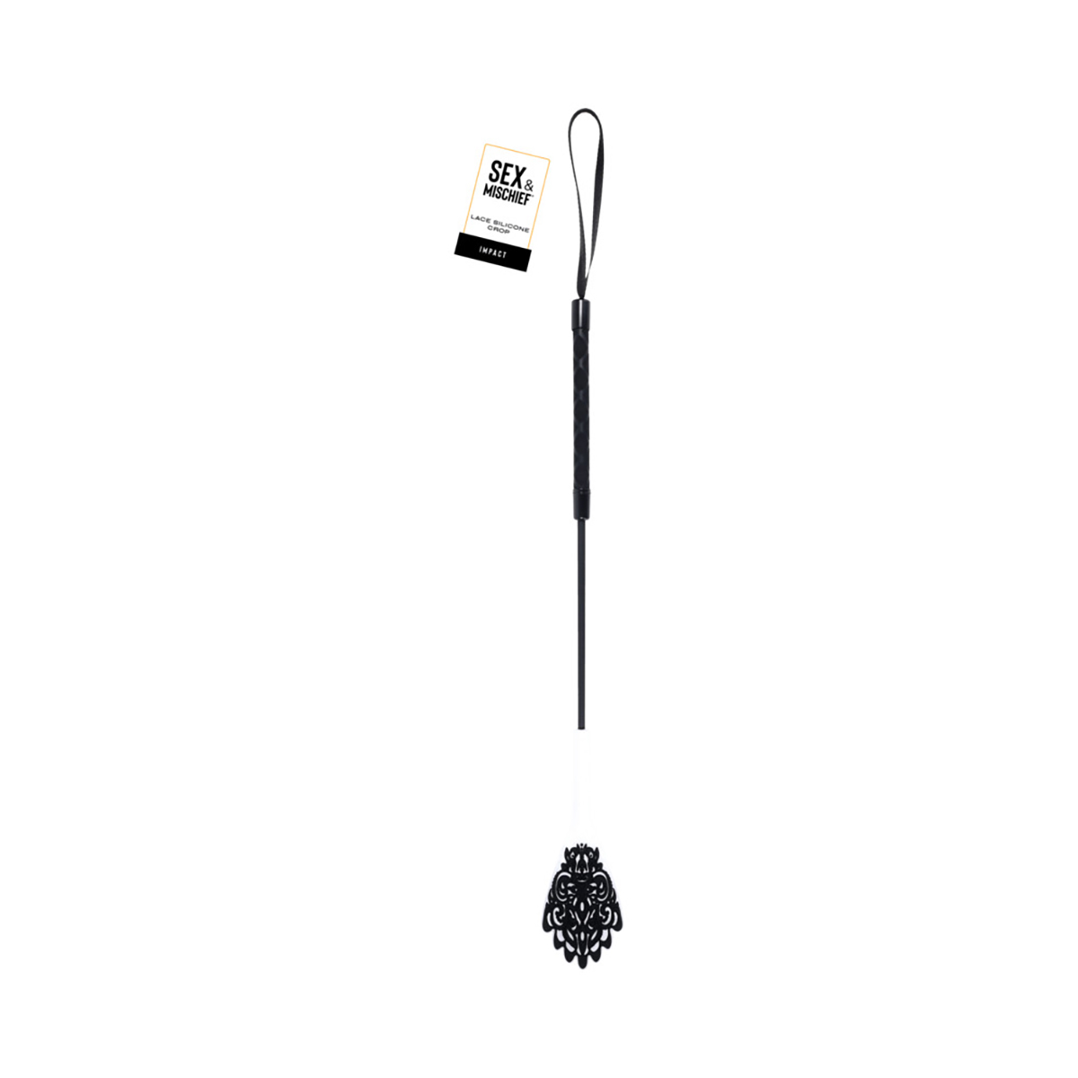 Leave a lasting mark of desire with the Lace Silicone Crop, an elegant and sultry twist on a classic. Featuring a 100% silicone lace-patterned tip, this crop delivers a sharp, tantalizing sting while leaving behind a delicate trace of elegance and allure. The intricate lace design adds a layer of erotic indulgence, making each strike as mesmerizing as it is thrilling. From a teasing caress to a more commanding impact, the Lace Silicone Crop allows every moment to linger with dark romance and seductive power.