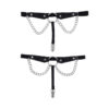 Elevate your look with a touch of elegance and edge in this sexy pair of Chain Lace Garters. Featuring lace-etched faux leather that combines comfort and durability, these garters exude sensuality while keeping a refined charm. A striking metal ring at the center infuses the design with boldness. Draped chains cascade effortlessly, adding a sultry yet graceful element. Designed for both style and function, the secure clip ensures your thigh-high stockings stay perfectly in place. Perfect for capturing attention or indulging in intimate moments, these garters strike the ideal balance of daring sophistication.