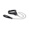 - 28″ hematite removable chain leash with faux leather handle
