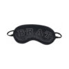 Satin blindfold with pink stitching spelling ft.BRATft.