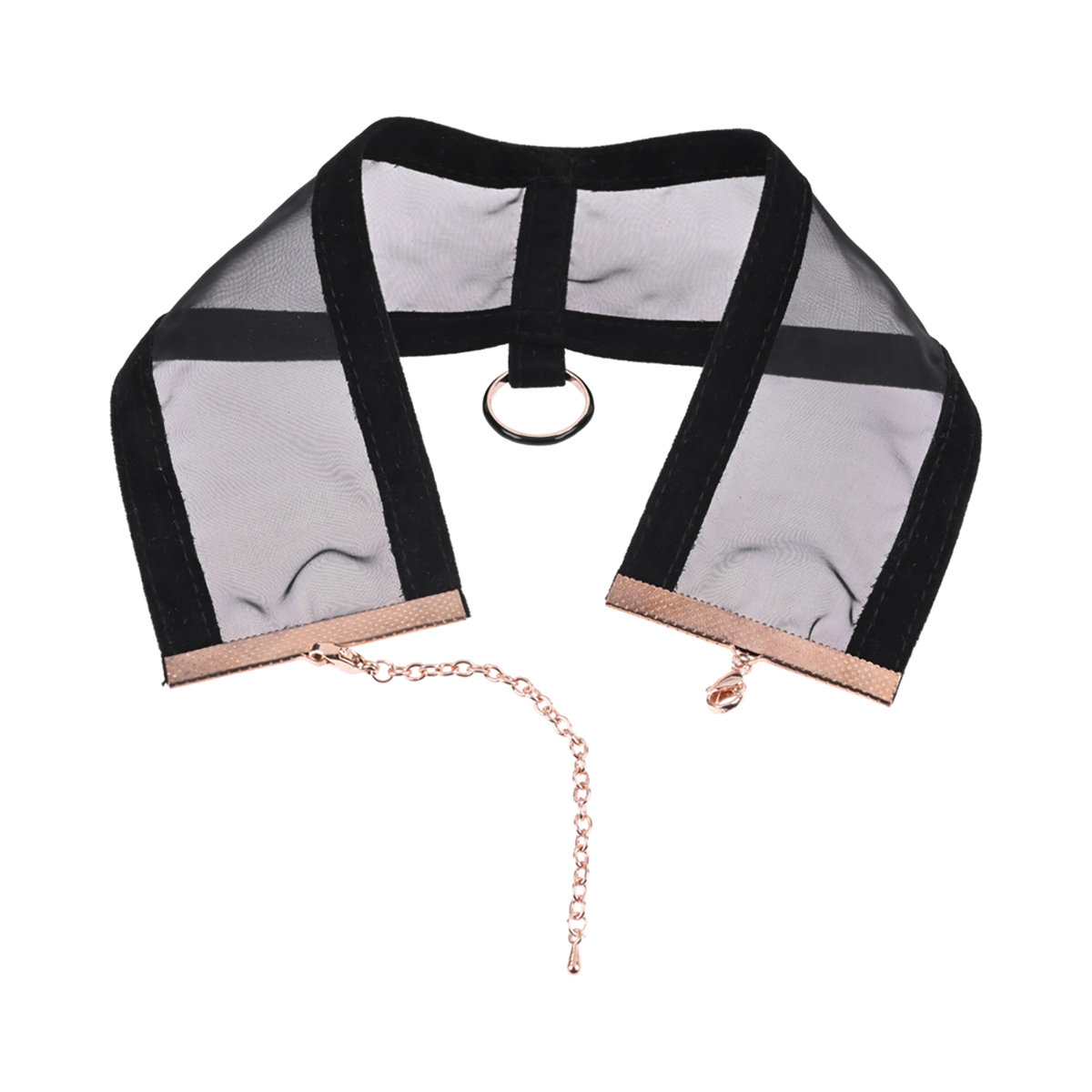 Add a touch of sensuality and allure to your outfit with the Sheer Day Collar! This stunning sheer collar features a black and gold collar ring and is delicately finished off with a luxurious velvet ribbon. The unique combination of materials makes the Sheer Day Collar a one-of-a-kind piece that will elevate any ensemble, in and outside of the bedroom. Indulge in the Sheer Day Collar and experience the ultimate in submission and glamour!