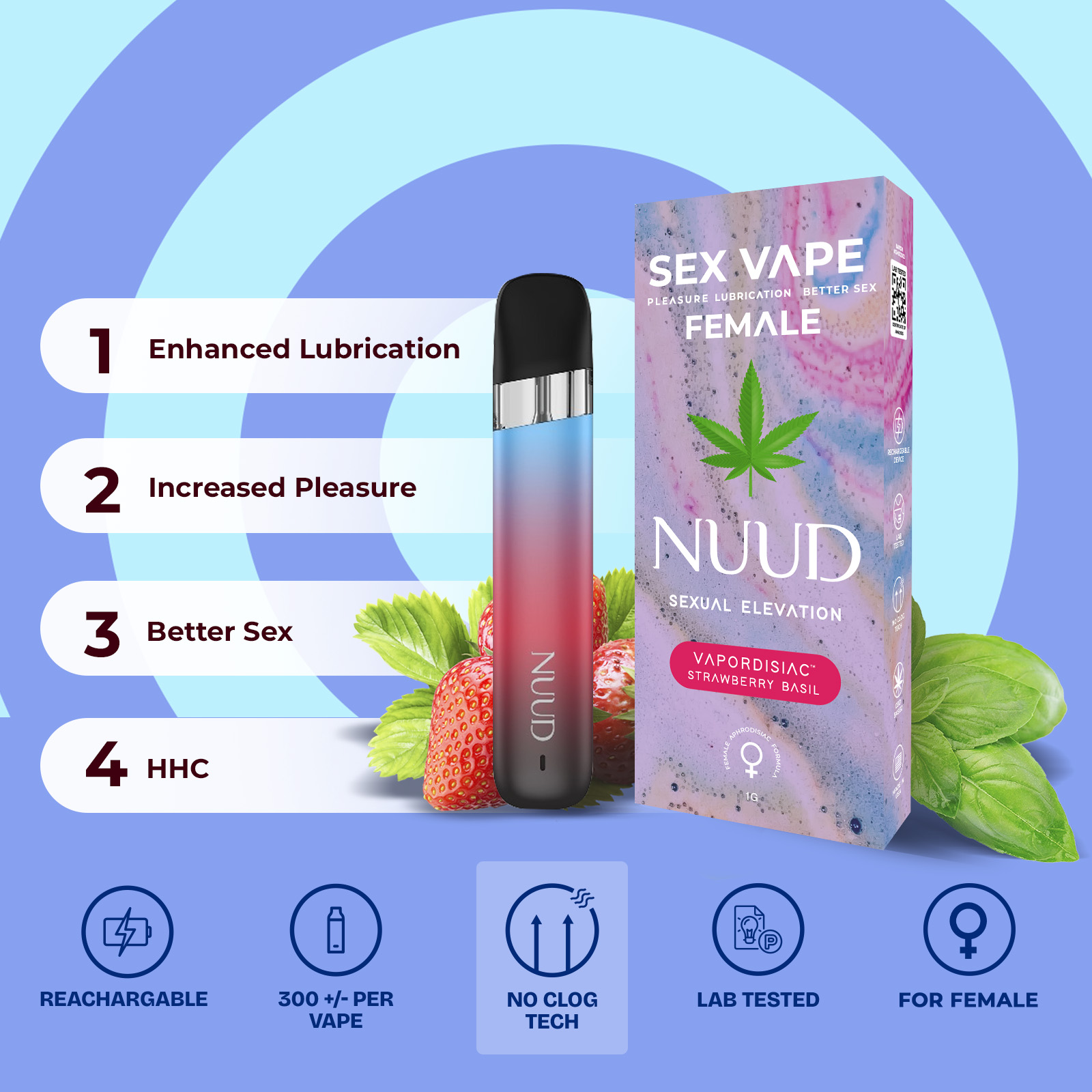 Our Aphrodisiac Vapes are meticulously formulated with top-grade, all-natural ingredients that aim to kindle your passion and intensify your desire. The compelling fusion of strawberry and basil can work together to stir feelings of elation and mutual connectivity, deepening your bond with your partner. Embark on a thrilling romantic journey and elevate your intimate experiences with every enticing puff of our desire-infused vape.