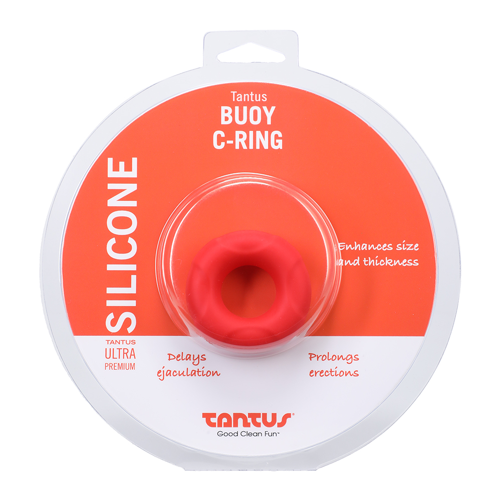 The Buoy is a soft, stretchy silicone ring, designed to keep the wearer harder for longer. Its thick and soft silicone keeps the testicles down and keeps the testes from contracting, thus slowing down ejaculation. This small-sized Buoy has an unstretched internal diameter of almost 18 mm for a tight fit.