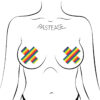 Glittering Rainbow Cross Nipple Pasties by Pastease are hand-made in the USA of soft sparkling velvet material that forms to curves and resists wrinkling over hardening nipples.