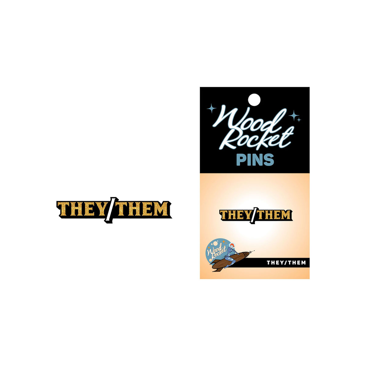 This fun They/Them Pronoun soft enamel lapel pin by Wood Rocket is the perfect accessory to let others know right away what your preferred pronouns are, avoiding potential mistakes leading to dysmorphia or confusion. Stick it on a hat or clothes or backpack or bag or purse it or give it as a gift!