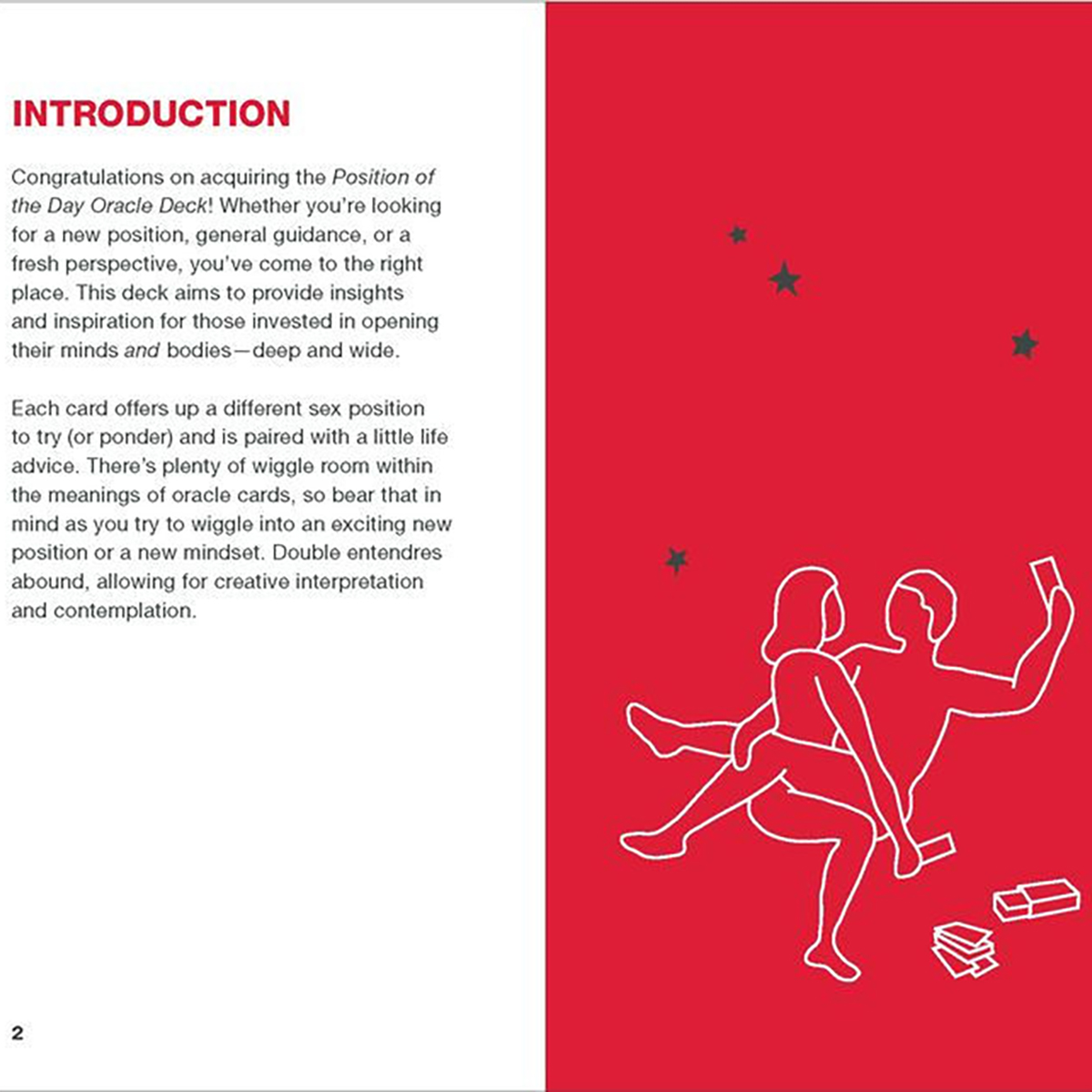 From the bestselling Position of the Day series, this playful and provocative oracle deck is the perfect tool for anyone seeking insights on life, love, and sex.
