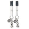 <p>Revel in the middle ground between pleasure and pain as you lose yourself to the slowly-intensifying sensations of these weighted nipple clamps. Adjustable pressure grips during wear to escalate sensitivity until you beg for erotic release. Firm-but-gentle, these adjustable clamps pinch the nipples with just the right amount of pressure to slowly build a warming sensitivity that blossoms into a titillating ache. Swaying from each tweezer clamp is a string of metal weights, causing further sensation to resonate through the nipples with every subtle movement. Soft silicone diffuses the severity of these clamps, offering a cushioned bite that allows pressure and movement to be the focus of play. Ideal for use as part of progressive sensory play, your erotic response can be deepened by pulling on the weights or using a vibrator to send delicious shivers through sensitized nipples. Part of the Fifty Shades of Grey The Official Pleasure Collection approved by author E L James. Complete with a Fifty Shades of Grey storage bag, these nipple clamps are the ideal erotic gift for fans of the trilogy.</p>