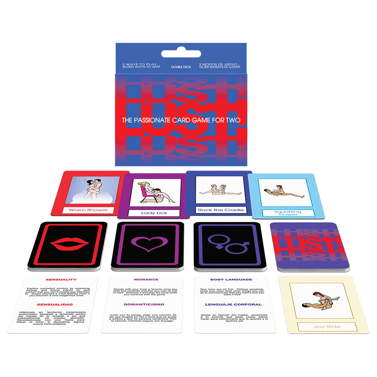 <p>The <em>Lust!</em> Card Game is the card game version of our popular board game of the same title. It is a game for lovers that allows people to explore both romantic and physical intimacy with their partners. They begin by acting out or sharing various romantic and sexual indulgences with each other. The Love-Making Cards explicitly illustrate either a foreplay activity or a sexual position. Partners use these cards to build and agree on a sexual fantasy. Each game ends with a unique love-making experience because there are over 30,000 possibilities within the Love-Making Cards.</p>