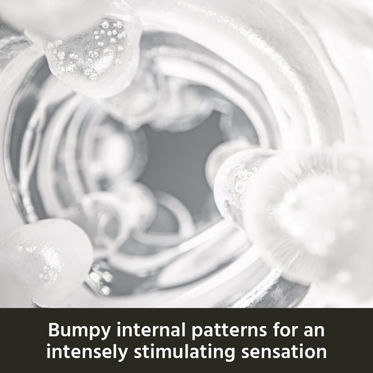 - Intense stimulation on the frenulum and glans from the rounded entrance and ribbed texture.