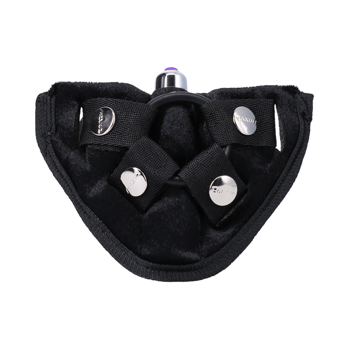 The Strap-On Vamp Kit is perfect for those who enjoy a full feeling during strap-on play. The Vamp dildo has realistic ridges and veins, great for g-spot and prostate play. The Velvet Vibrating Harness is comfortable, adjustable, and machine washable with a front panel channel for the bullet vibrator (included) and an interchangeable O-ring. The Harness is machine washable, when placed in a delicates bag, using mild detergent or you can handwash. Make sure to remove the bullet vibe prior to washing. Hang drying the Harness is recommended. Our silicone dildos are dishwasher safe, toy cleaner compatible or you can handwash them using mild soap and water, too