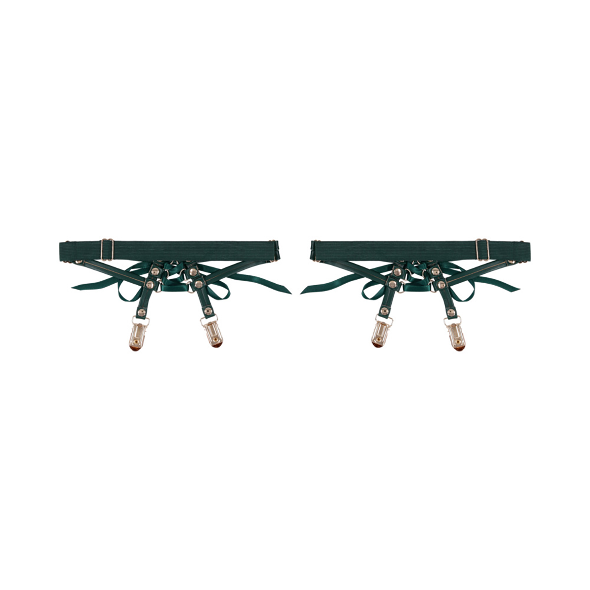 Add a hint of bondage to your lingerie. The Indica Laced Up Garters wrap your thighs in emerald faux leather and tie closed with silky green satin laces for a corset-inspired fit. Adjustable from 18″ to 26″, these garters hug the body just rightenhancing curves, stocking security, and seductive confidence. Whether worn under clothing or as part of a scene, they’re guaranteed to turn heads.