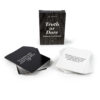 The Truth or Dare Intimate Card Game is not the average truth or dare game. Build intimacy, trust, and love by playing Je Joue’s intimate Truth or Dare card game. The Dare cards will encourage players to explore each other’s bodies in new ways, discovering new sensations, and deepening the understanding of each other’s unique pleasure points. The Truth cards will ask to share memories, dreams, ideas, and opinions to learn something new about each other to enhance the bond and feel closer than ever.