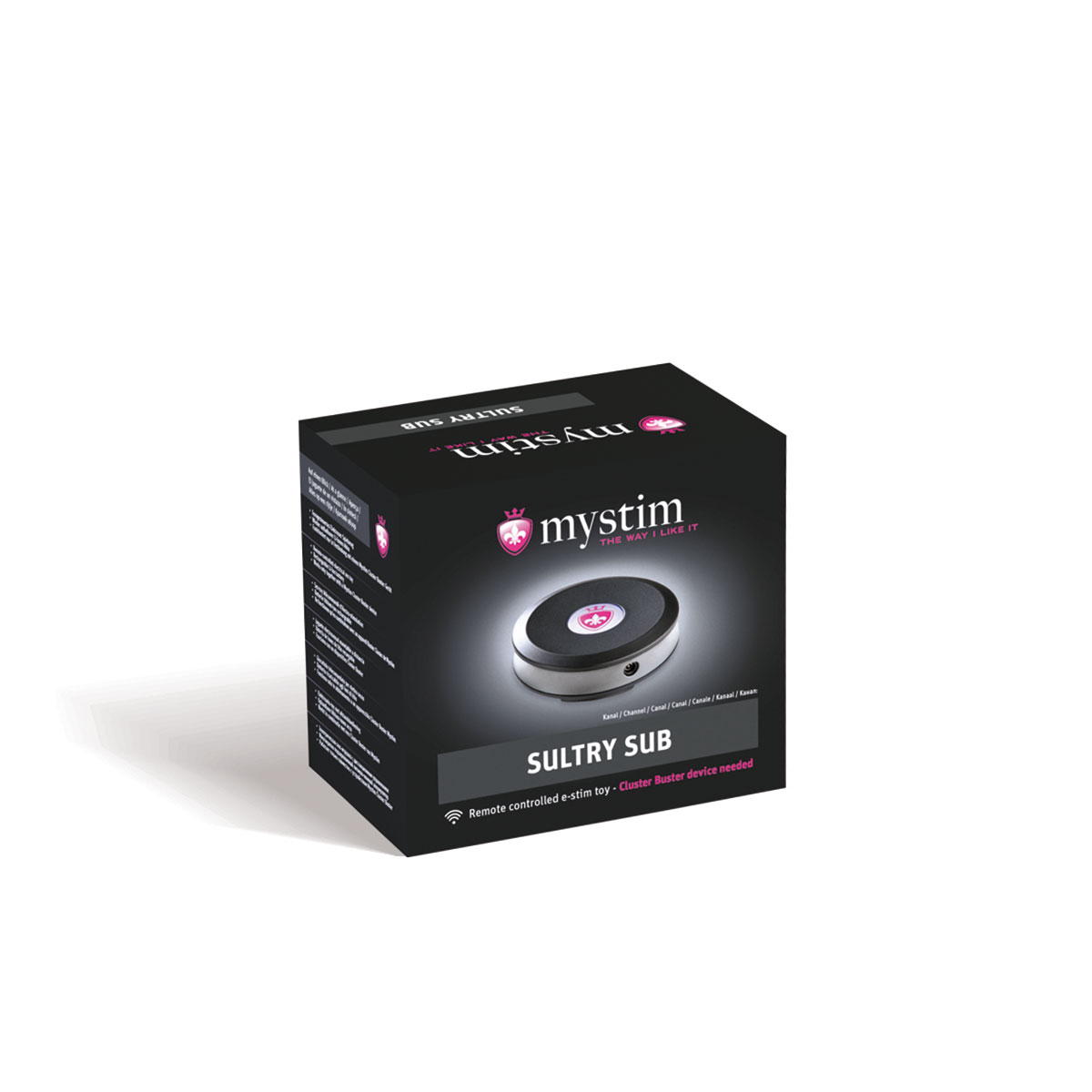 1 Mystim Cluster Buster (remote control, 1 Mystim Sultry Sub (receiver), 1 cable, 1 bipolar self-adhesive electrode, 1 double USB charging cable, 1 operating instructions, 1 elegant box