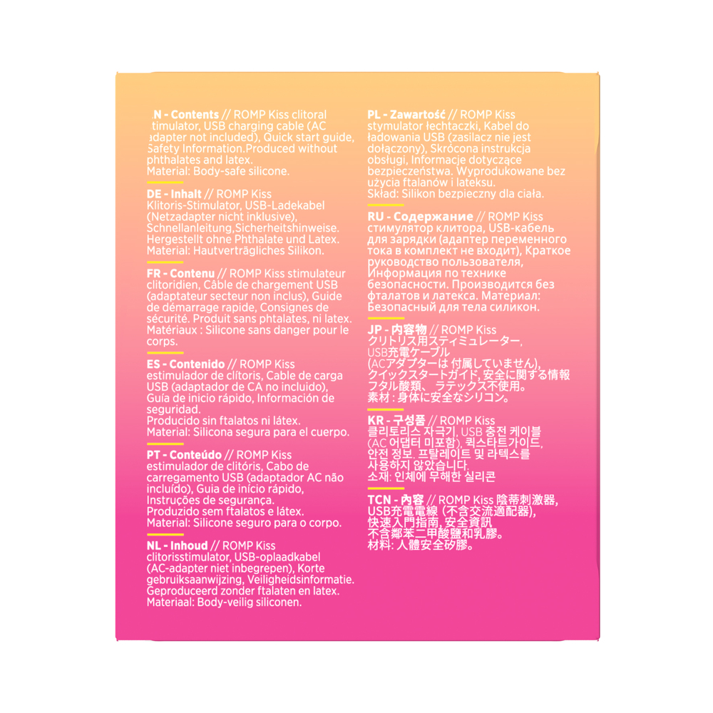 - It’s Getting Intense: From a gentle wave to the peaks of pleasure, ROMP Kiss clitoral suction has 3 different intensity settings to deliver the right level of stimulation for your mood and arousal.
