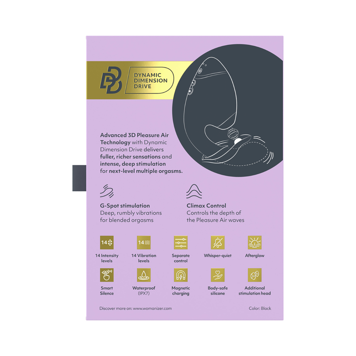 3D Pleasure Air Technology Womanizer’s patented 3D Pleasure Air Technology with Dynamic Dimension Drive takes Pleasure Air to the next level by using controlled air pressure to create pulsating sensations that mimic natural suction.