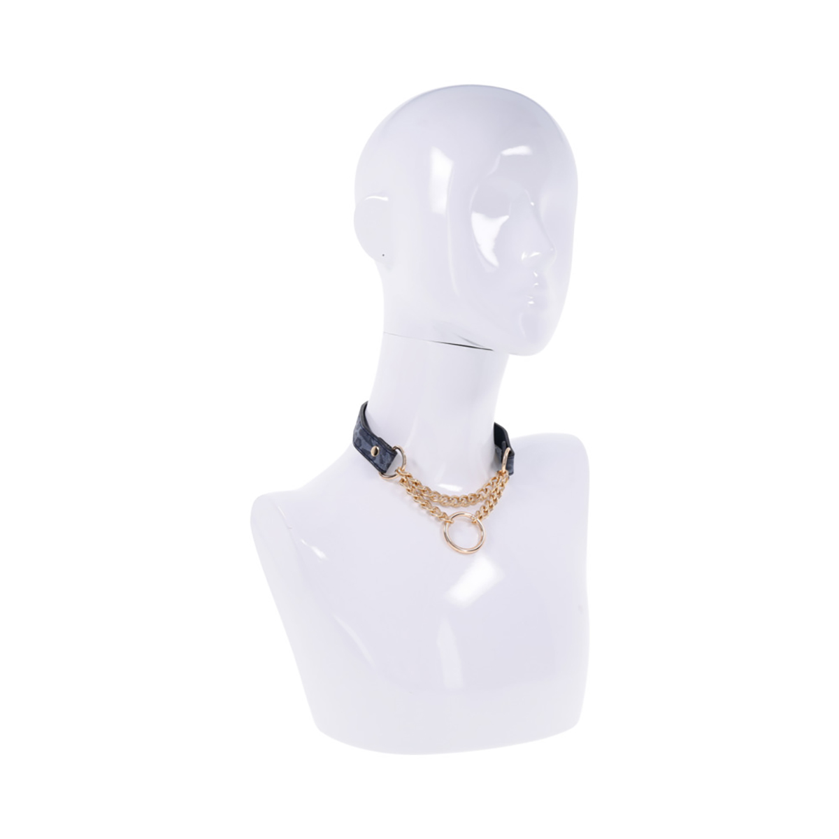 This elegant piece, crafted from animal-printed faux leather, is adorned with subtle gold hardware, making it a stylish accessory for any occasion. The gold ring that hangs from your neck can be used for playful tugs or to attach a leash, adding an extra layer of excitement to your encounters. Wear it as a bold statement or a discreet symbol of your wild side, and let your inner feline shine.